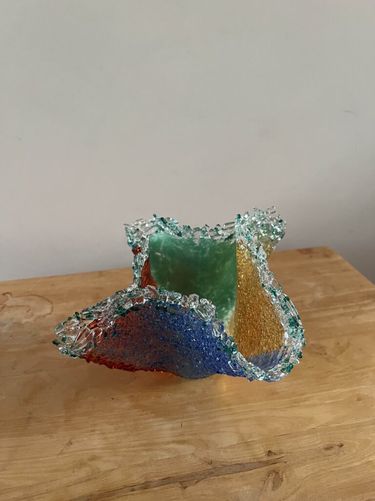 I will be sharing my glasswork sculptures and abstract oil paintings.