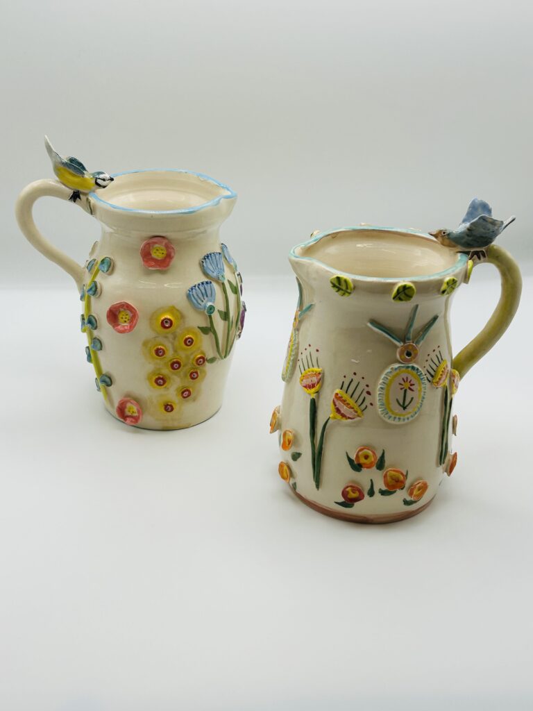 Highly decorated slip ware, practical ceramic mix of functional and decorative pots