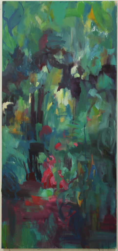 I am a painter focusing on nature and women. Dense, interior landscapes invite the viewer to experience colour and gesture in these expressive, bold works that dip into fairy tale, myth, and transformation. Women that enter my work are implicitly present even if not always literally apparent, inviting a feeling of other worldliness. Colour and the physicality of the paint sweeping across the canvas in an entanglement of marks are paramount in these strong, vibrant paintings.