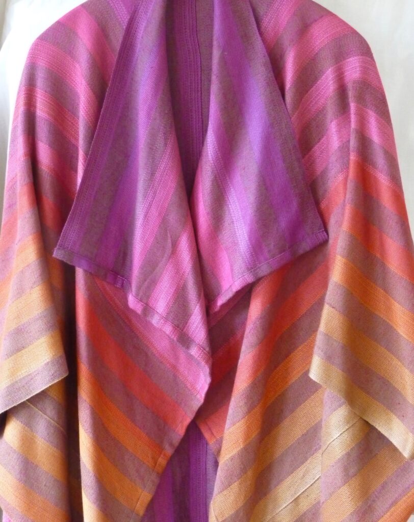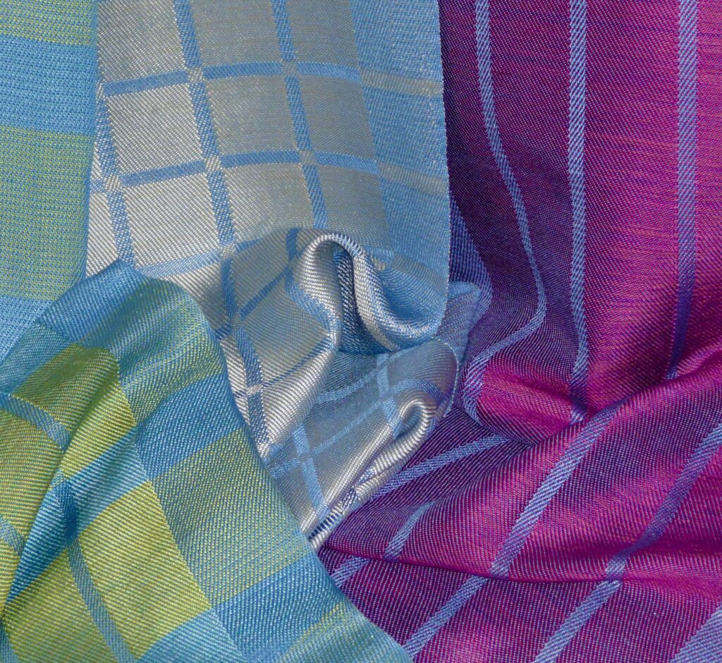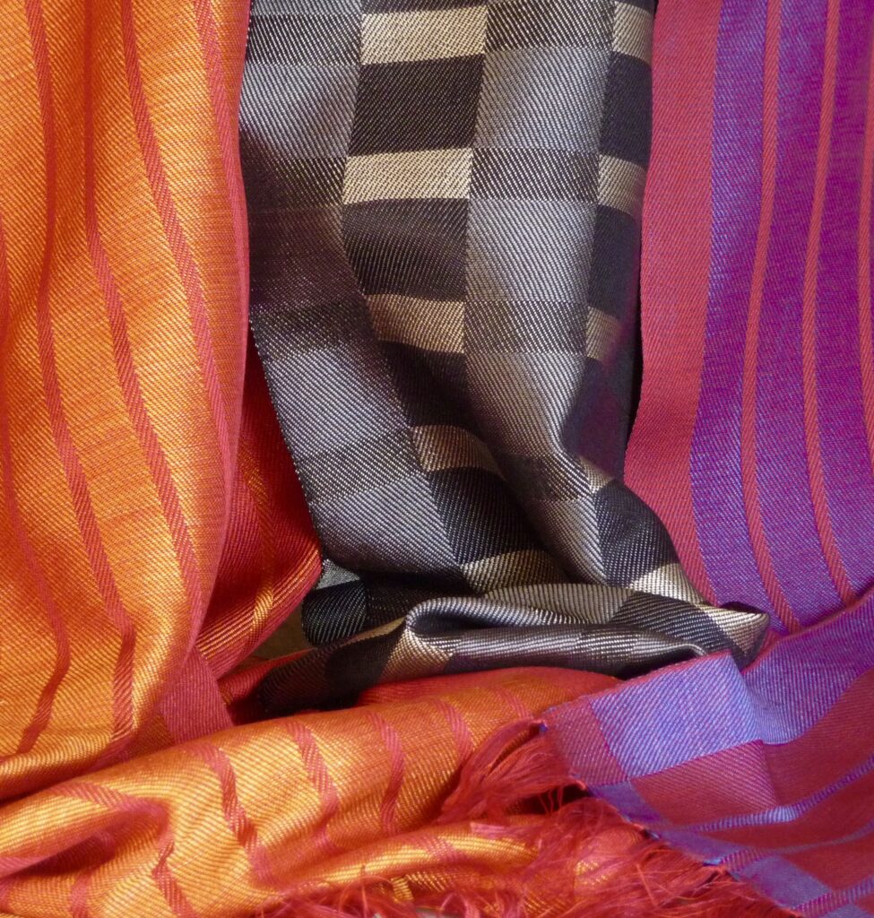 Handwoven textiles in silk and other natural fibres. Individual scarves and clothes in simple shapes.