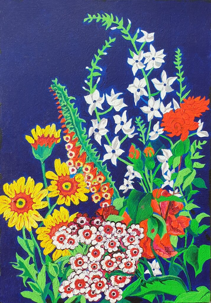 Having lived in Spain and Iran, and with roots in Northern England, my visual language is shaped by a diverse cultural experience. The energy and passion of flamenco, the discipline of ballet, and my background in teaching art all contribute to my ideas and practise. I am also influenced by my father, who was a textile designer for Sandersons, whose floral patterns and use of colour have inspired my work.