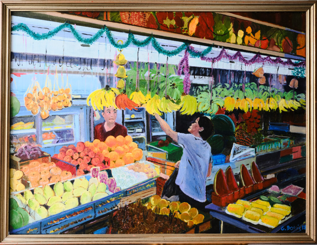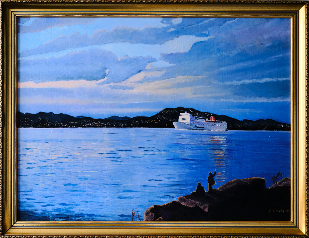 Framed and unframed oil and watercolour paintings of local scenes, Norway, and France where light is the most important.