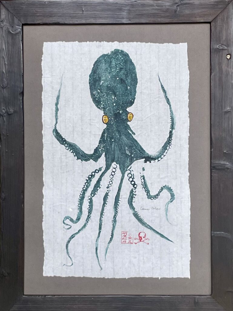 I take imprints from real sea creatures using acrylic paints on rice paper.